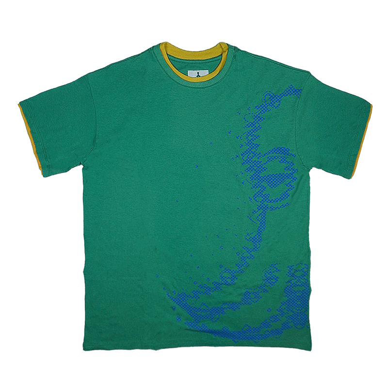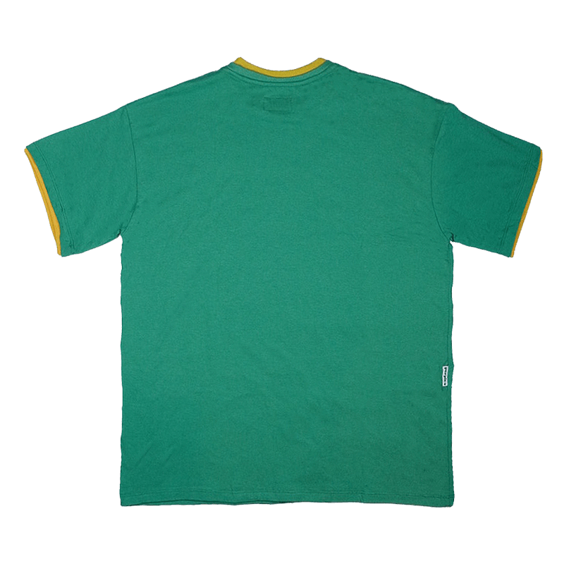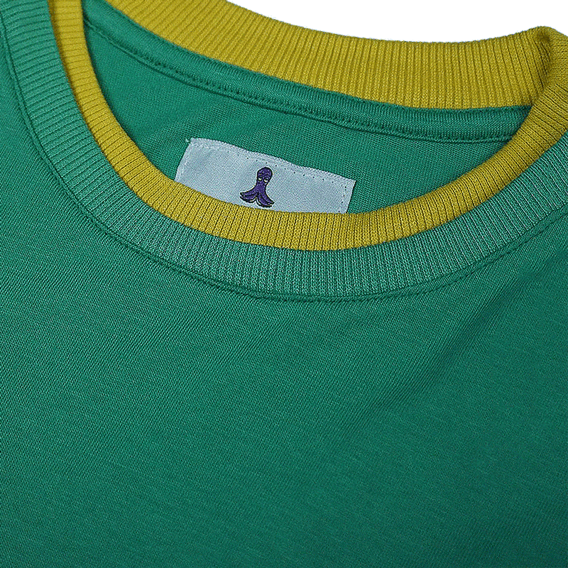 Camiseta 100% algodão com duas golas reforçadas, em modelagem regular e acabamentos contrastantes nas mangas.