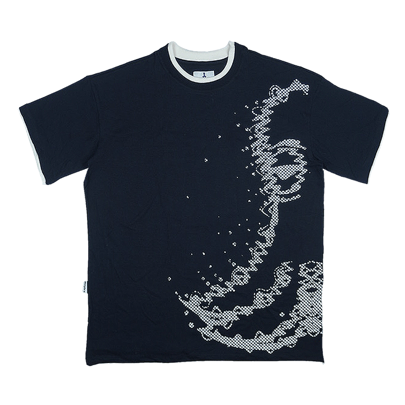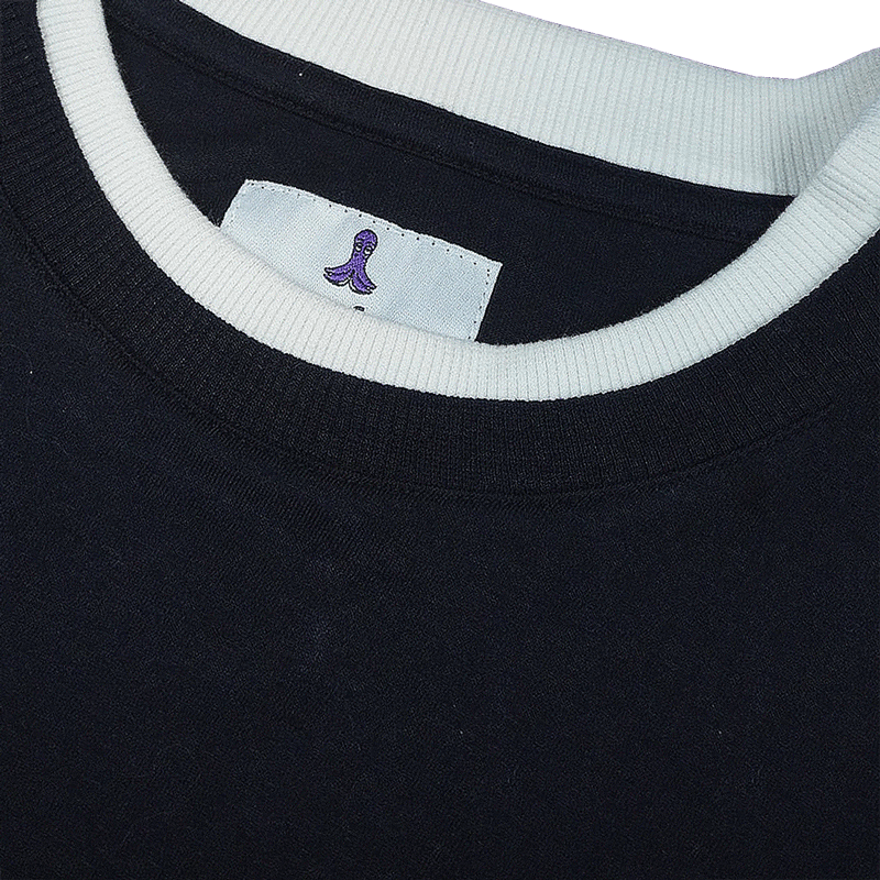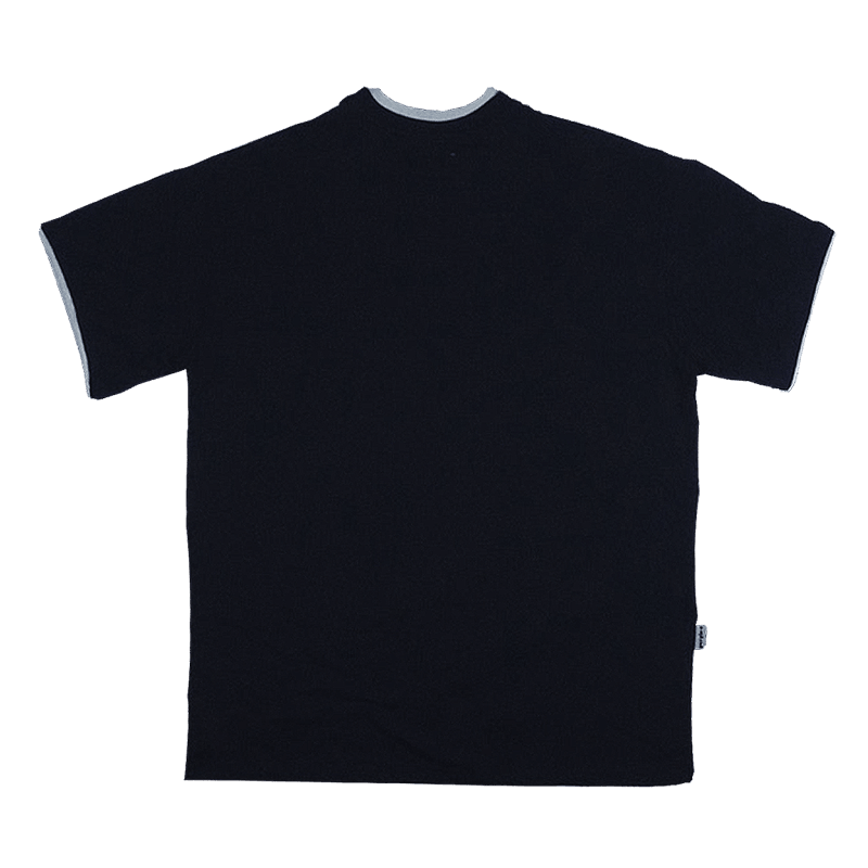 Camiseta 100% algodão com duas golas reforçadas, em modelagem regular e acabamentos contrastantes nas mangas.