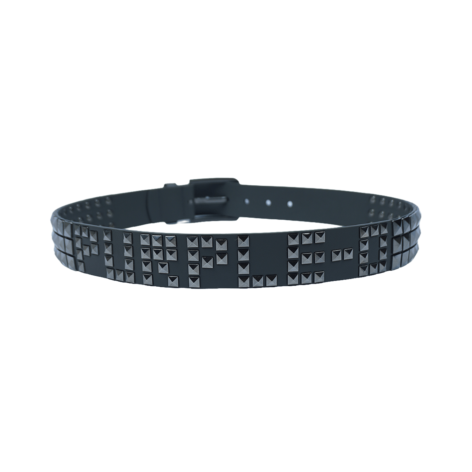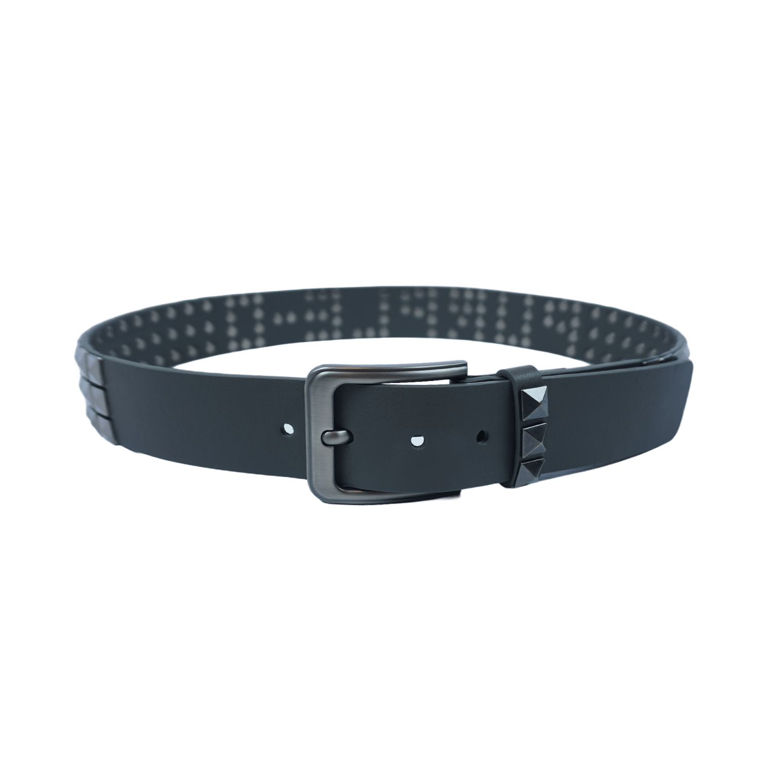 Cinto cravejado, inteiro cinza com rebites resistentes e material em cintentico de altíssima qualidade.